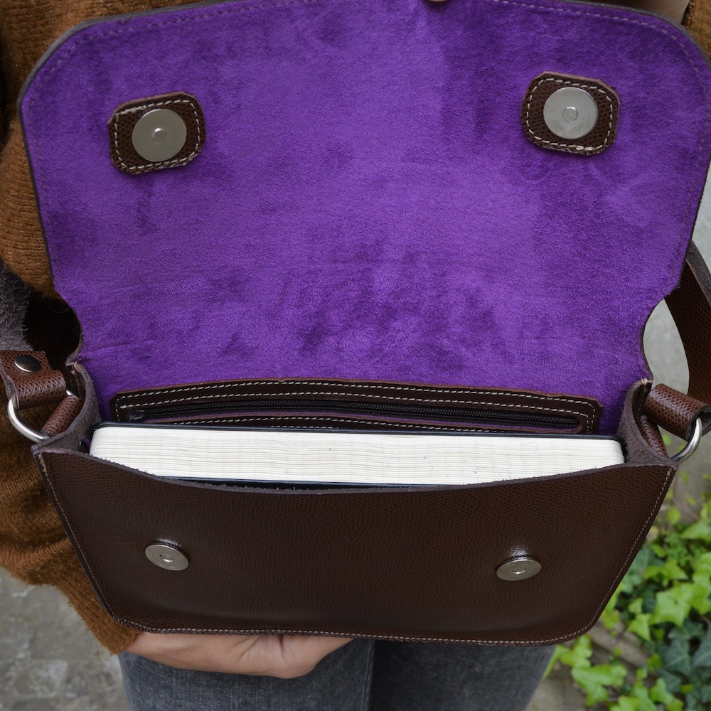 Borsa del Popolo is sleek, lightweight, and versatile, but still large enough for a book, wallet, phone, etc. The bag is lined in suede and features an inner zipped pocket and a back slip pocket. The bag fastens with a magnetic closure.