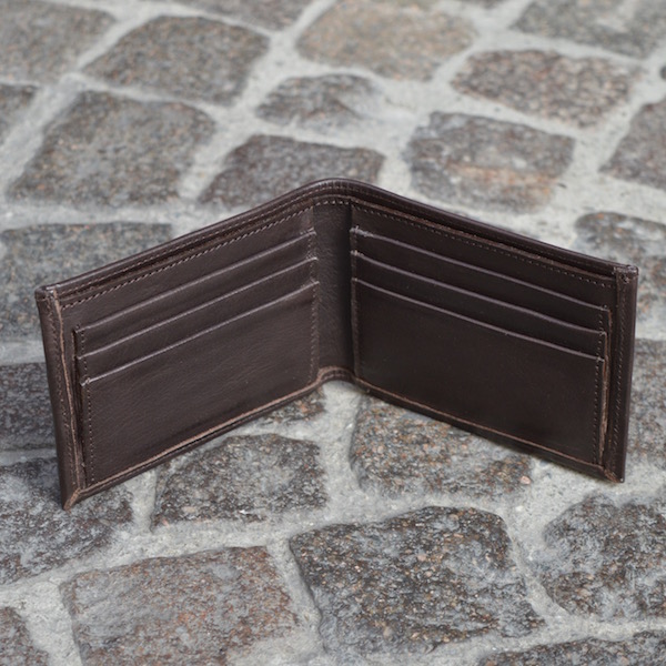 This bifold wallet measures 8.5 x 23 cm when open and 8.5 x 11 cm when closed. The wallet contains a billfold, 3-6 credit card slots, and the option of an additional ID slot.