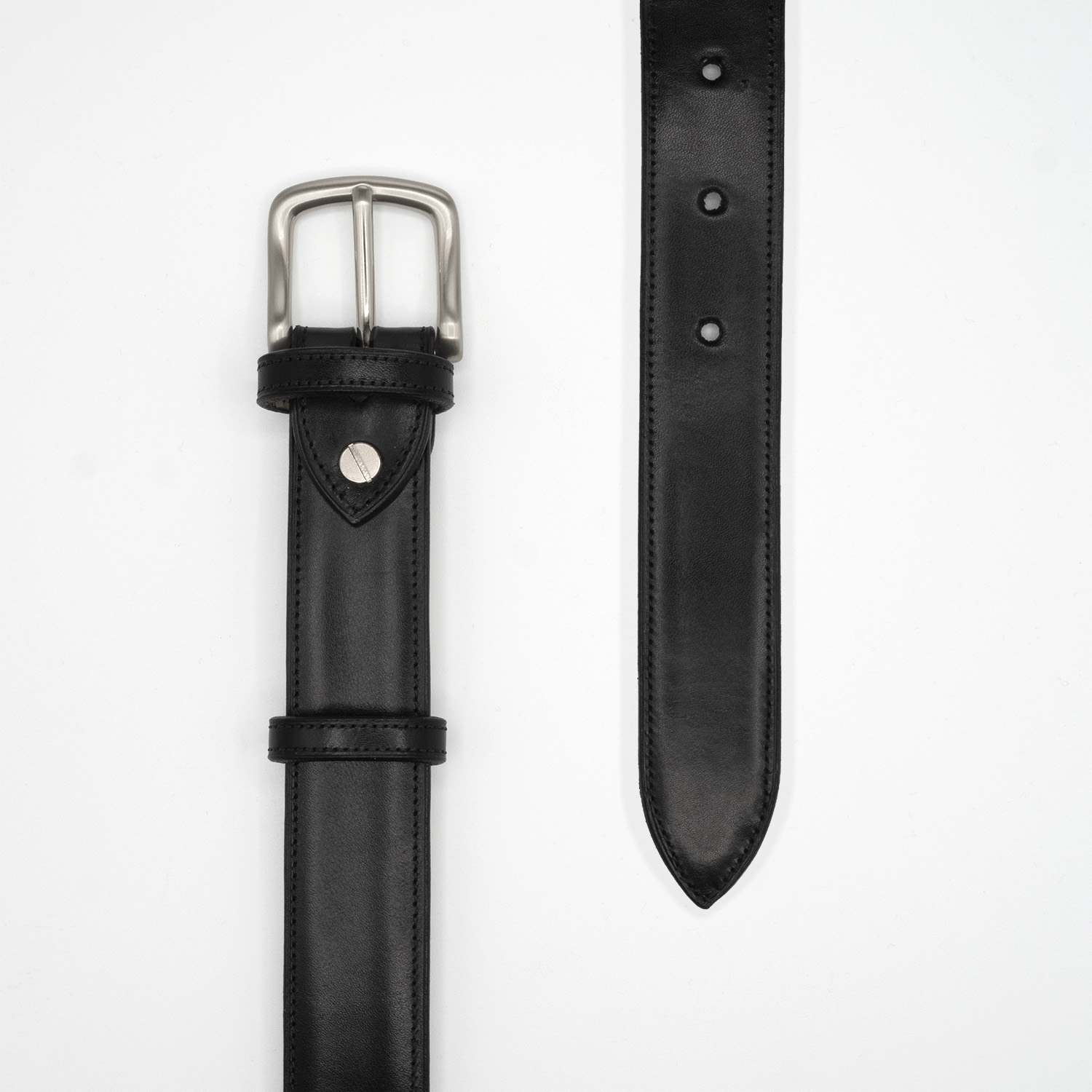 Federico Badia hand makes each Black Roma Dress Belt from the highest quality Italian tanned box calf. These belts are perfect for business, festive, or elegant occasions. Because they are thin and sleek, they pair perfectly with a suit. The Roma Dress Belt will not stretch or bend over time, because of it is reinforced, lined, and stitched. This means that the belt really will last a lifetime. Because of the high quality of the box calf leather, which is the same that Federico uses for shoemaking, each belt will grow more beautiful with age and wear.