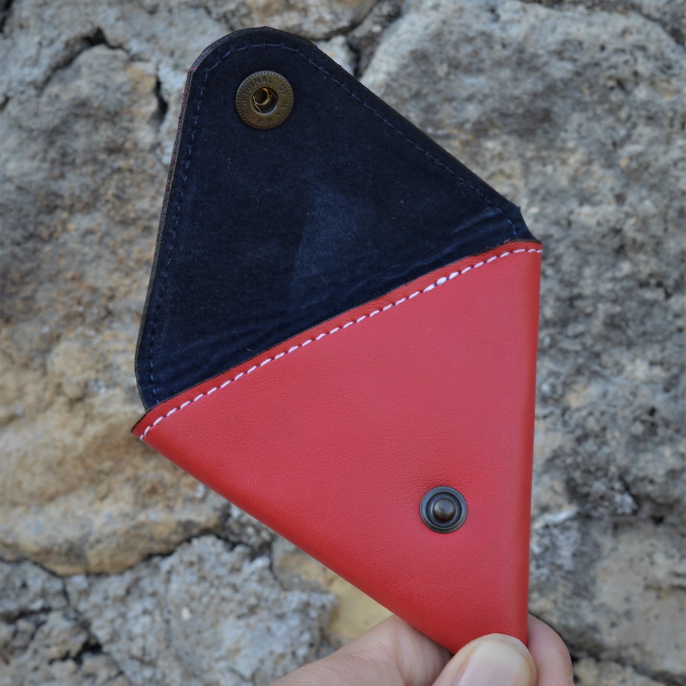 The Triangle Coin Pouch closes and opens with two snaps, making it easy to find even the most hard to reach coins. The triangles are all made with vegetable tanned Italian calf and lined with suede vegetable tanned pigskin.