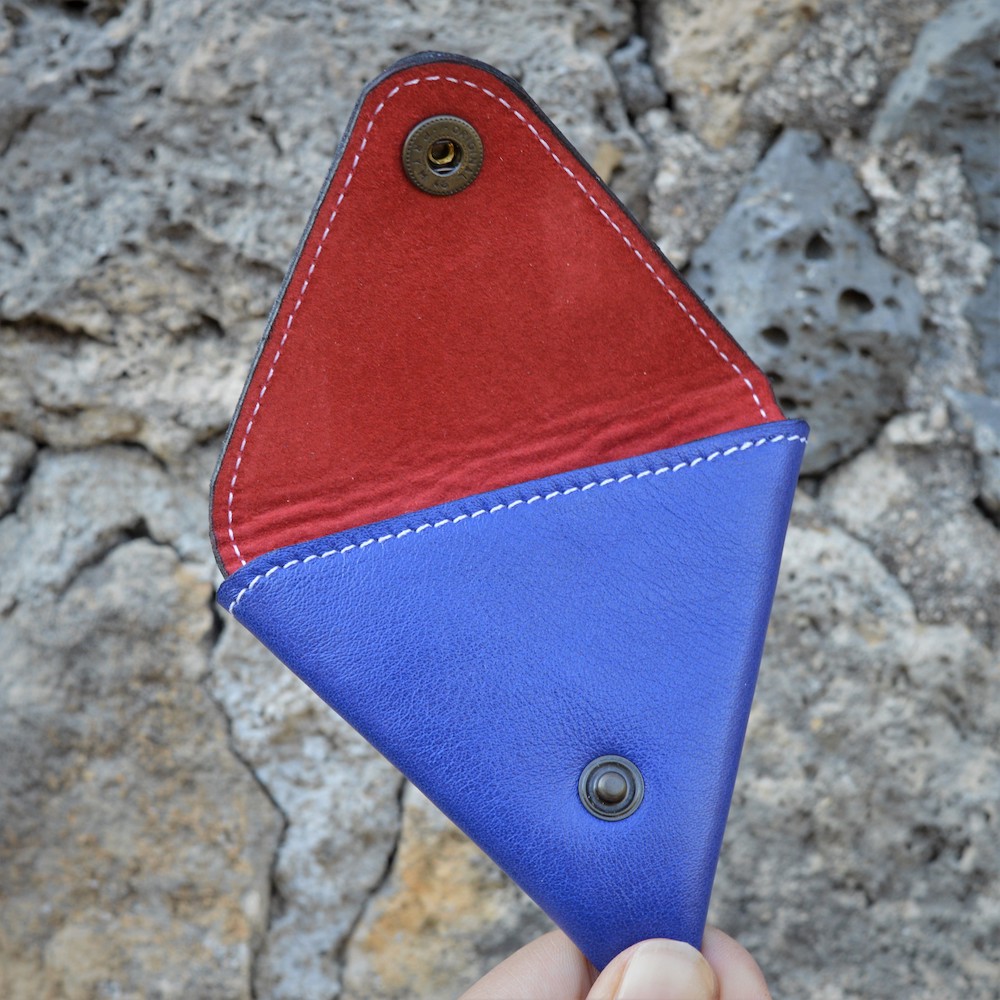 The Triangle Coin Pouch closes and opens with two snaps, making it easy to find even the most hard to reach coins. The triangles are all made with vegetable tanned Italian calf and lined with suede vegetable tanned pigskin.